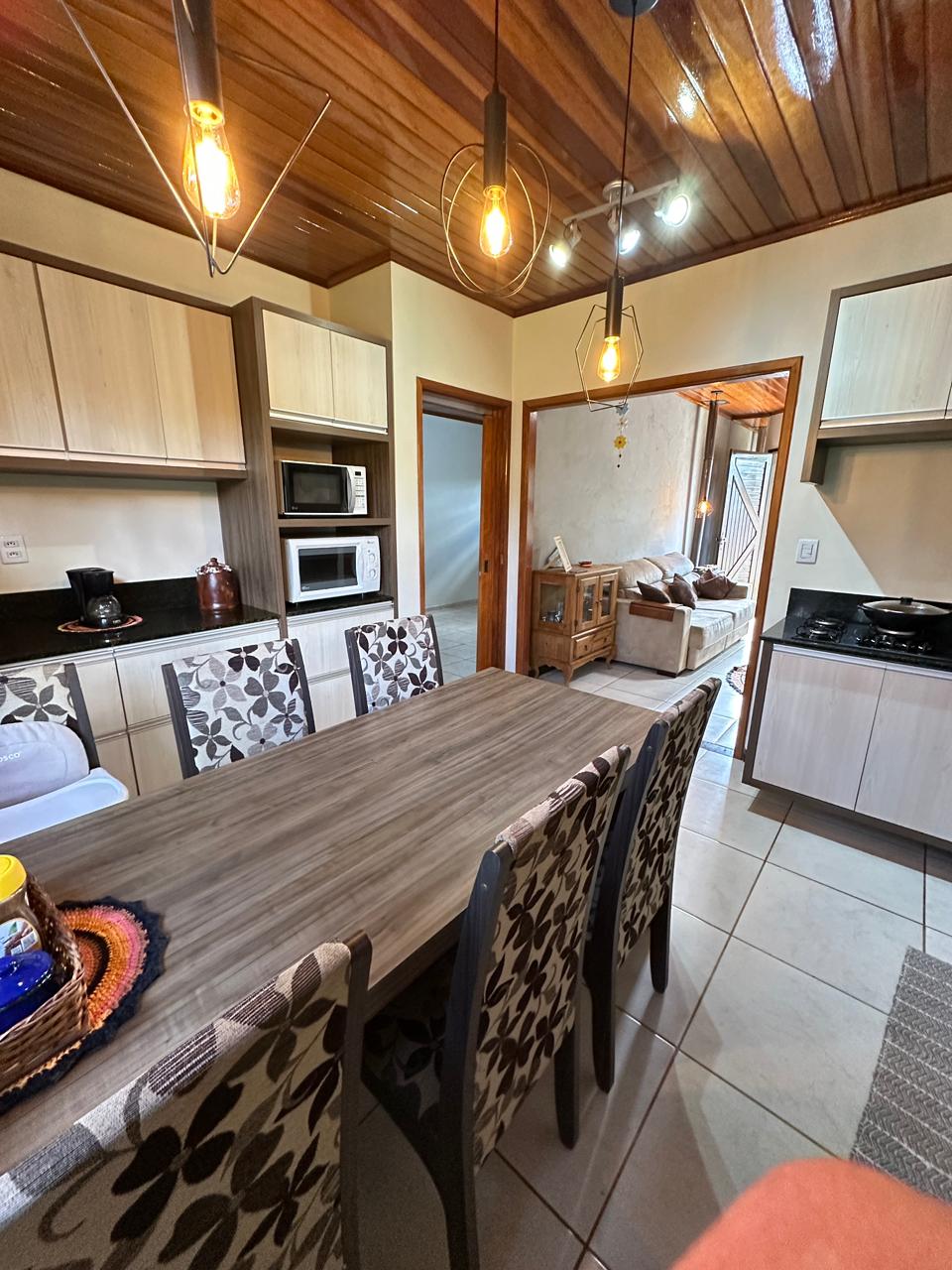 Imóvel com terreno 360 m²                                                  Área construída de 124 m²  em um Bairro Tranquilo e Seguro, com boa vizinhança.                                                 Um imóvel com toda praticidade e aconchegante .        Cozinha com móveis sob medidas, área de serviço toda com balcão sob medidas para se manter organização ,   sala de estar, dois dormitórios 2 banheiros , área gourmet ampla  aberta com churrasqueira, garagem com churrasqueira para o dia frio e chuvoso . Um imóvel simplesmente lindo e com uma boa energia, um imóvel  conservado para pessoas exigentes.